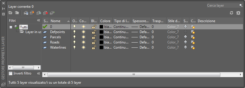 I layer inclusi nella Carta sono elencati insieme alle relative proprietà.