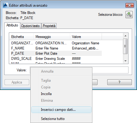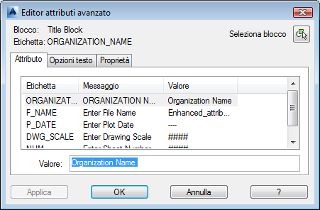 Fare doppio clic sul riquadro del cartiglio per visualizzare l'Editor attributi avanzato.