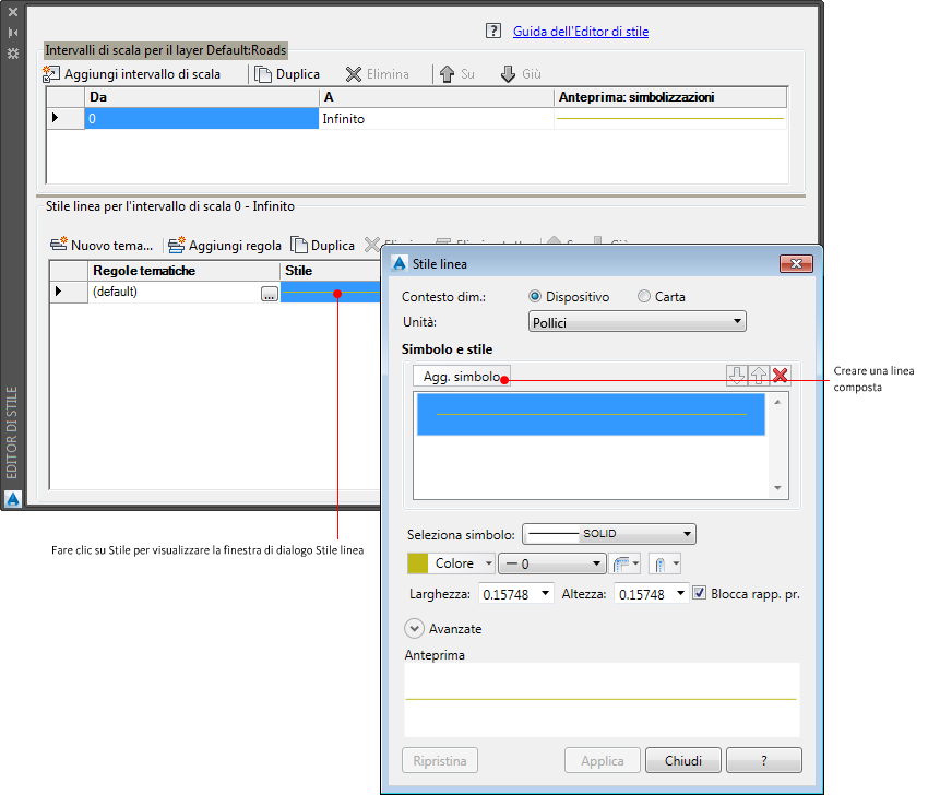 Definire un altro intervallo di scala e specificare uno stile di linea continua per tale intervallo.