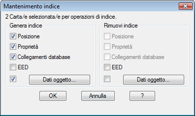 Gli indici vengono creati. Mentre si utilizzano le Carte, ripetere questa procedura regolarmente per aggiornare e ricreare gli indici.