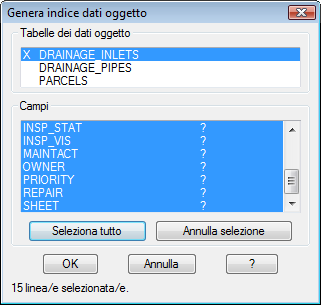 Un indice dei dati oggetto velocizza la creazione delle query sulle Carte contenenti dati oggetto. L'indice viene aggiornato automaticamente ad ogni salvataggio delle modifiche apportate a una Carta. In questo esercizio viene creato un indice dei dati oggetto per il file cartografico Redding.dwg.
