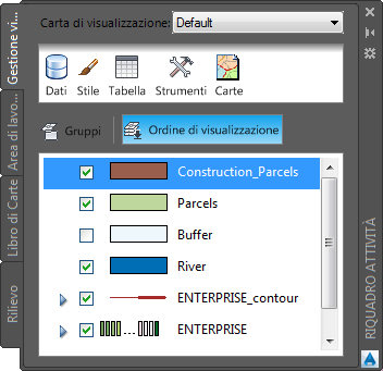 Il nuovo layer è denominato Parcels in Gestione visualizzazioni.