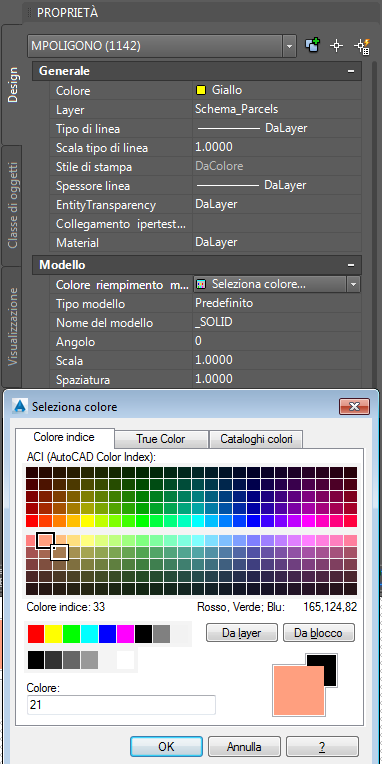 Modificare il colore di riempimento di tutti gli oggetti della classe di oggetti Parcels utilizzando la tavolozza Proprietà.