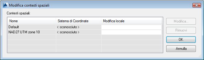 - Fare clic su Modifica Sistemi di Coordinate quindi, nella finestra di dialogo Modifica contesti spaziali, fare clic sulla voce appropriata.
