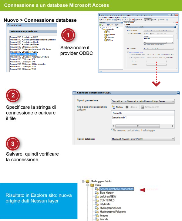 - Nella finestra di dialogo Connetti a dati, selezionare Provider FDO OSGeo per ODBC.