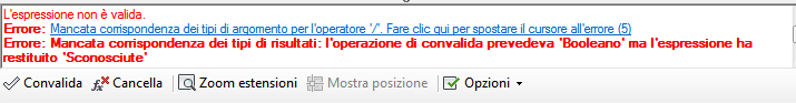 Quando si salva un'espressione, ne viene sempre verificata la validità. Tale verifica può anche essere eseguita prima del salvataggio.