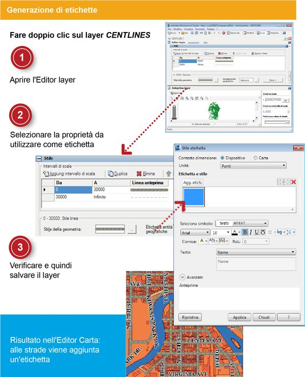 In questo esercizio vengono definite le etichette che dovranno essere visualizzate sulle principali strade della Carta.