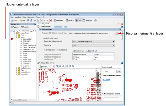 Autodesk Infrastructure Studio consente di creare una nuova fonte dati dell'oggetto cartografico e un nuovo layer per ciascun file SDF.
