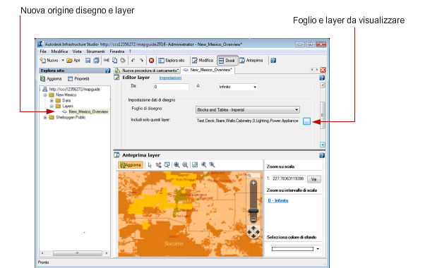 Autodesk Infrastructure Studio consente di creare una nuova fonte dati Carta e un nuovo layer per ciascun file DWF.