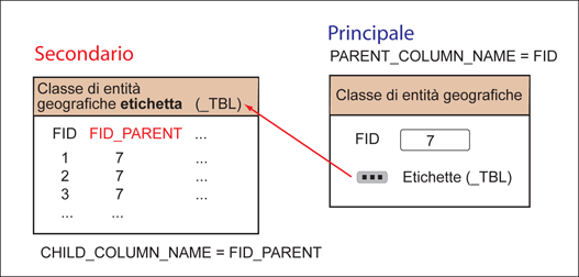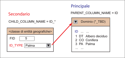 Nell'illustrazione riportata di seguito viene mostrata la relazione tra una tabella di entità geografiche e una di dominio.