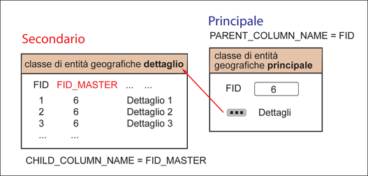 Nell'illustrazione riportata di seguito viene mostrata la relazione tra una tabella principale e una di dettaglio.