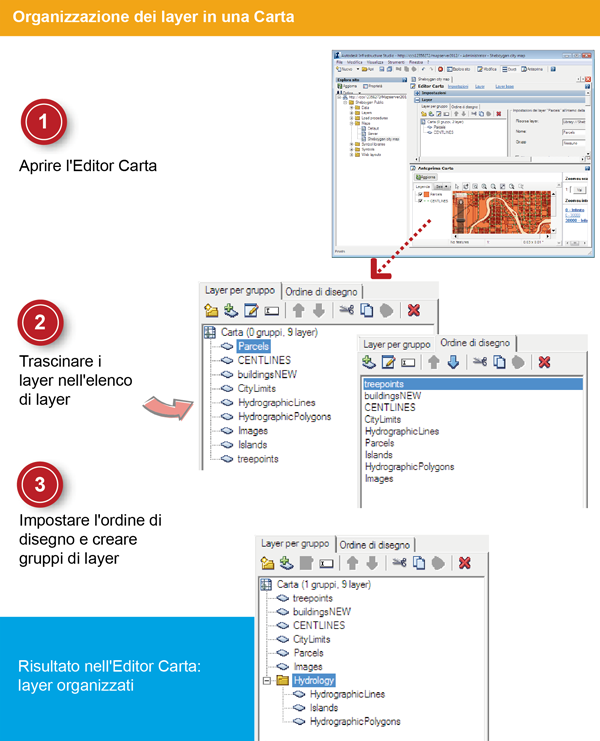 - Ripetere l'operazione per trascinare nell'elenco i layer visualizzati nell'illustrazione della pagina affiancata.