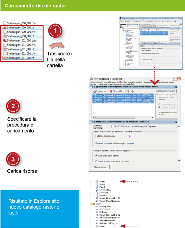 Notare il nuovo catalogo raster e le risorse layer in Esplora sito.