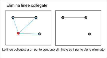 Il gruppo di regole DeleteConnectedLines consente di eliminare le linee collegate ad un punto quando quest'ultimo viene eliminato.
