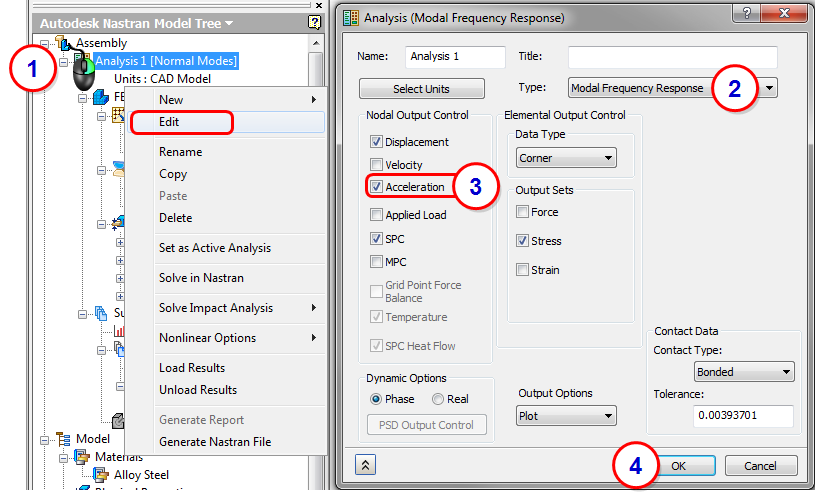 - From the Assembly Tree, right-click on Analysis 1, and click Edit.