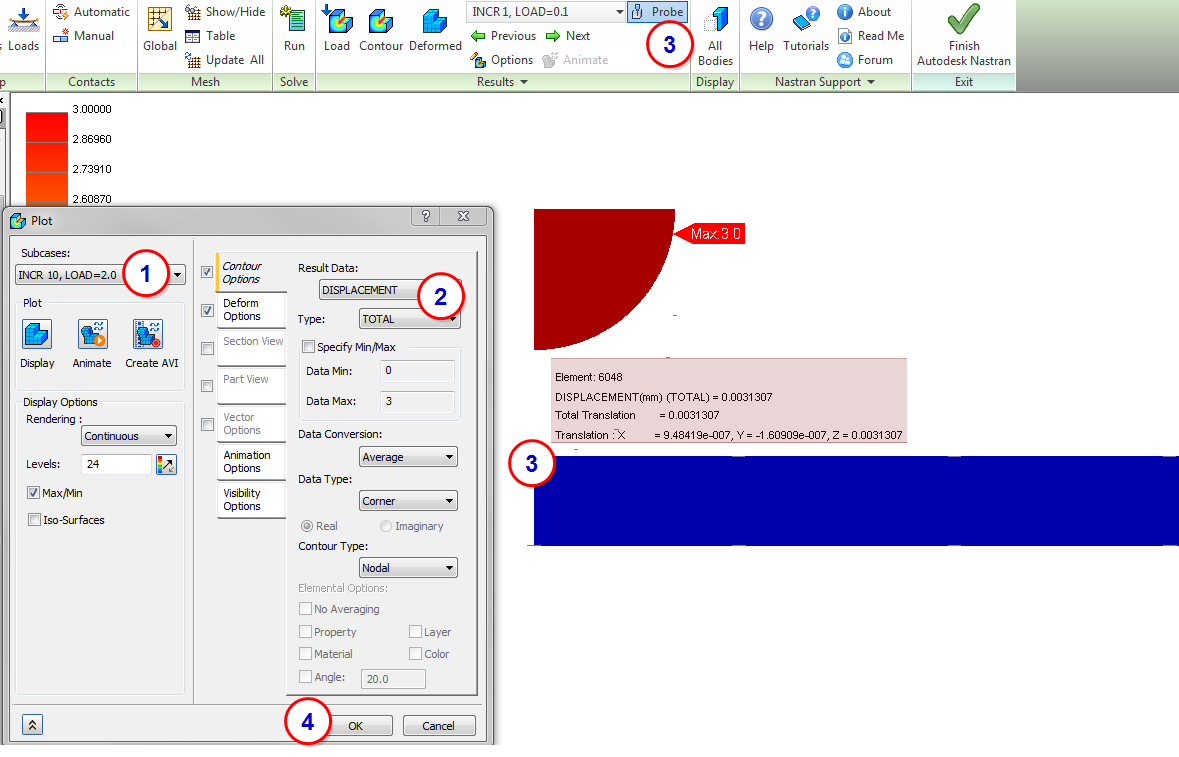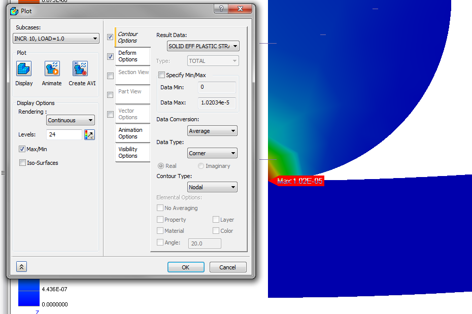 - Select INCR 10, LOAD = 1.0 from the Subcases menu.