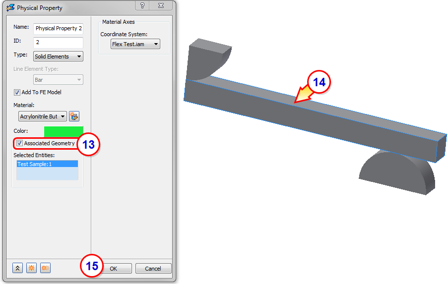 In this exercise, we will duplicate the three-point bending test required in ASTM D638 for plastic material flexural testing. Our analysis will feature a section of polymer (acrylonitrile butadiene styrene) subjected to a uniform stress (uniaxial tension test) in a test rig. We will setup a nonlinear material model, and will intentionally over-deform the beam into the apparent nonlinear and post-yield range of the material. Finally we will unload the test bar to look for permanent deformation.