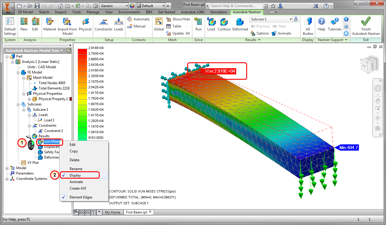 Congratulations! You have finished your first FEA model in Autodesk® Nastran® In-CAD!