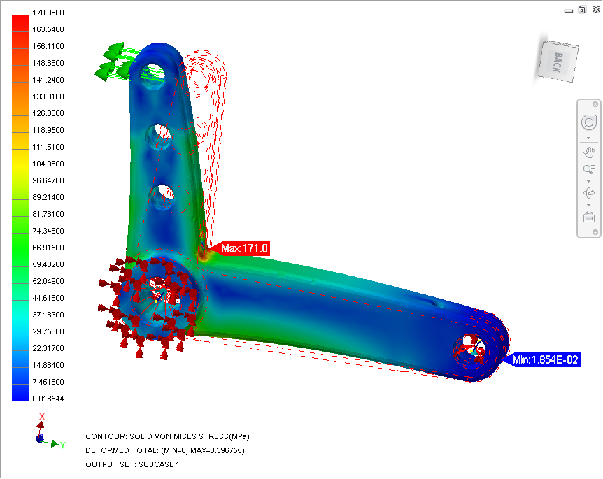 We replaced clearly incorrect loads and constraints with advanced techniques that produced a much more realistic deformation.