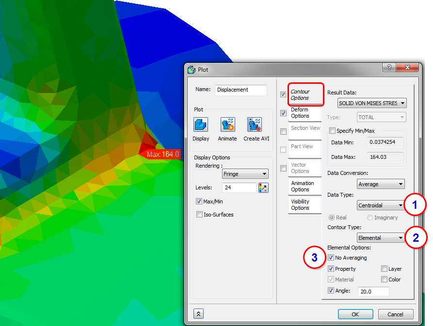 Note that the unaveraged centroidal plot shows large jumps in stress across adjacent elements. This is a clear indicator that mesh refinement is needed.