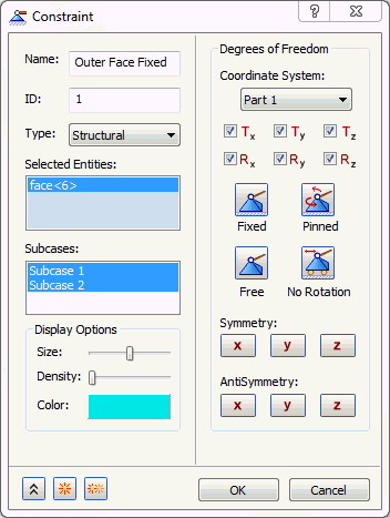 - Accettare le impostazioni di default e fare clic su OK per creare un vincolo fisso.
