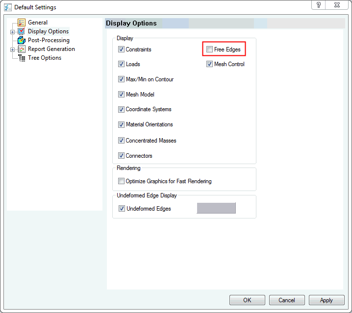 Per rimuovere gli spigoli di colore bianco, passare a Impostazioni di default, quindi Opzioni di visualizzazione e deselezionare Spigoli liberi.