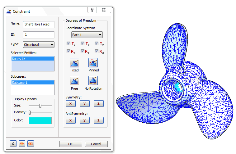 Per default, il vincolo viene impostato sulla condizione Fisso (tutti e 6 i gradi di libertà dei nodi sulla superficie selezionata sono vincolati).