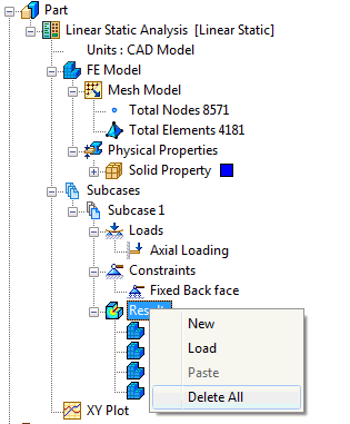 Fare clic con il pulsante destro del mouse su Linear Static Analysis, scegliere Nuovo sottocaso e fare clic su OK.