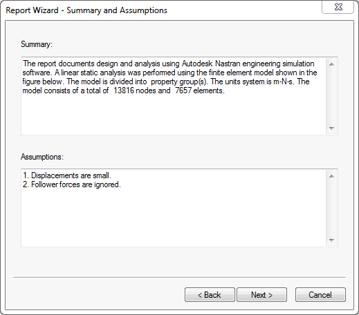 - Verrà visualizzata la finestra Creazione guidata rapporti - Riepilogo e ipotesi. Nell'area Ipotesi, aggiungere 3. Effects of gravity are negligible. Fare clic su Avanti >.