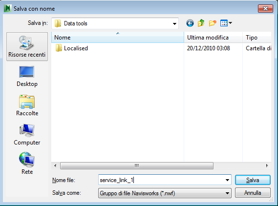 Nella finestra di dialogo Salva con nome, individuare la cartella desiderata e immettere un nome per il file DataTools. È inoltre possibile selezionare il nome di un file datatools esistente da sovrascrivere con la configurazione modificata.