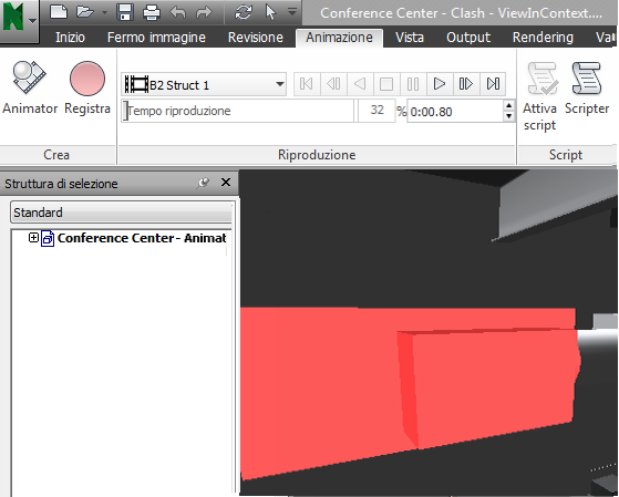 - Nella finestra Clash Detective, configurare ed eseguire un test di interferenza dinamica (vedere Utilizzo di Animator per interferenze dinamiche).