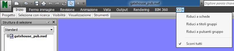 - Riduci a pulsanti gruppi: riduce la barra multifunzione in modo che siano visibili solo i titoli delle schede e i pulsanti dei gruppi.