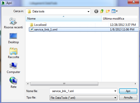 , individuare la cartella in cui si trova il file datatools necessario, selezionarlo e fare clic su