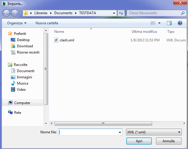 - Nella finestra di dialogo Importa, individuare la cartella contenente i dati del test di interferenza, selezionarla e fare clic su Apri.