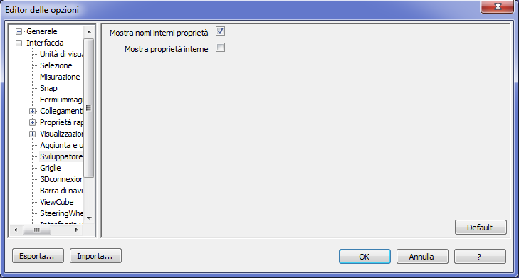 - Selezionare la casella di controllo Mostra proprietà interne per aggiungere proprietà degli oggetti nella finestra Proprietà.