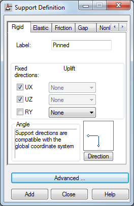 In the Supports dialog box, double-click on Pinned (as shown below) to open the Support Definition dialog box.