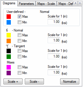 On the Diagrams tab in the Stress Analysis - Structure dialog, you can select a set of stresses that will display as diagrams on the structure.