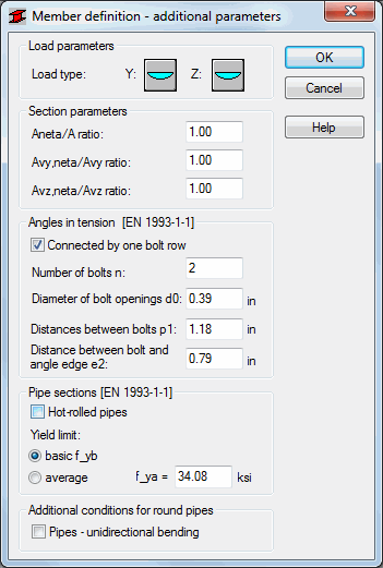 - Conditions for round pipes. If the Pipes - unidirectional bending option is selected, then, for this type of section, a bending moment equal to a sum of moments acting along axes Y and Z is calculated; the resultant moment is the basis for member design