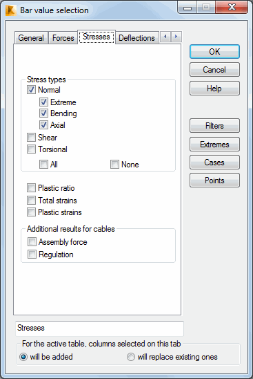 Select the Stresses tab in the Bar Value Selection dialog to define stress values for presentation.