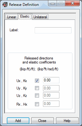 Elasticity coefficients are available only when the elastic releases option or the unilateral release option is selected. Elasticity coefficient values for linear releases are specified in the following units: