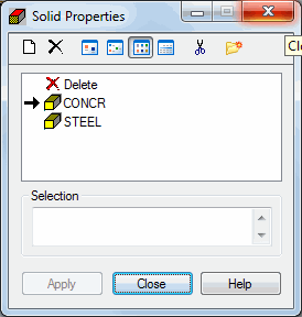 If on the active list of properties types, no type of solid properties has been defined or if to an existing list of properties, a new type is to be added, you should click Definition of a new solid property. Two situations are possible: