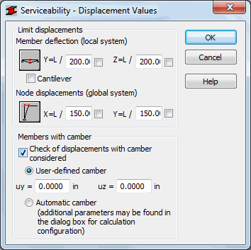 - Member deflection: Y and Z. Use the Y and Z fields to define limit deflection of a bar in the direction of axis Y and Z, respectively, depending on the length of the bar, e.g. L/200.