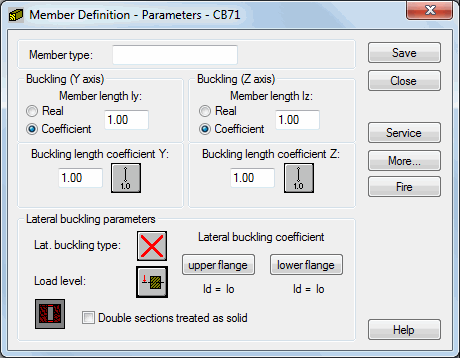 Lateral buckling type, load level, and lateral buckling length coefficients are used during the verification of lateral buckling of the bar and may be selected in the Lateral Buckling Parameters field.