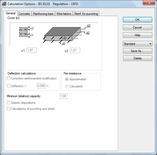 After opening the Calculation options dialog box for RC slabs and selecting the General tab, the dialog box shown below appears on screen.