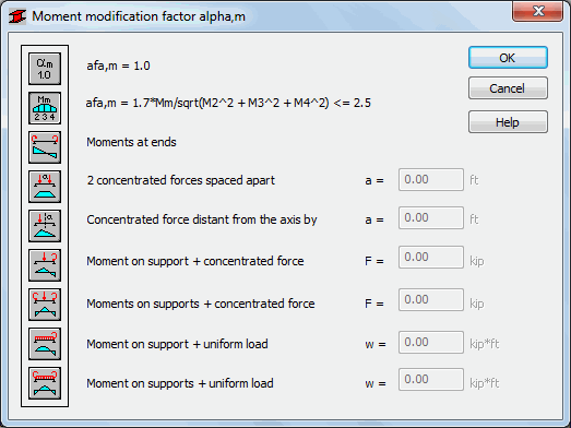 Use this option to specify values of lateral buckling coefficients.