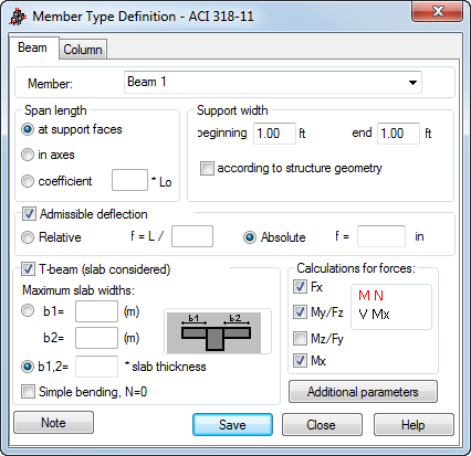 - If T-beam (slab considered) is selected, the design of T-beams (beams considered integrally with slabs) is active.