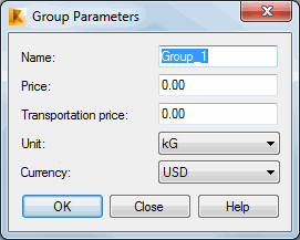 Click either New or Change in the Cost estimate dialog to define or modify parameters of groups.