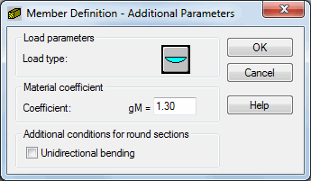 The lower part of the dialog defines additional conditions for round sections, i.e. unidirectional bending. If the option is selected, then during calculations of a member with round section subjected to bi-axial bending, the moments My and Mz are replaced with a resultant moment being their vector sum. The members are then subjected to unidirectional bending.