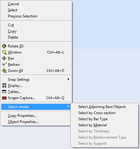 Not all context menu options are available in every instance because many are dependent on the selected object type.