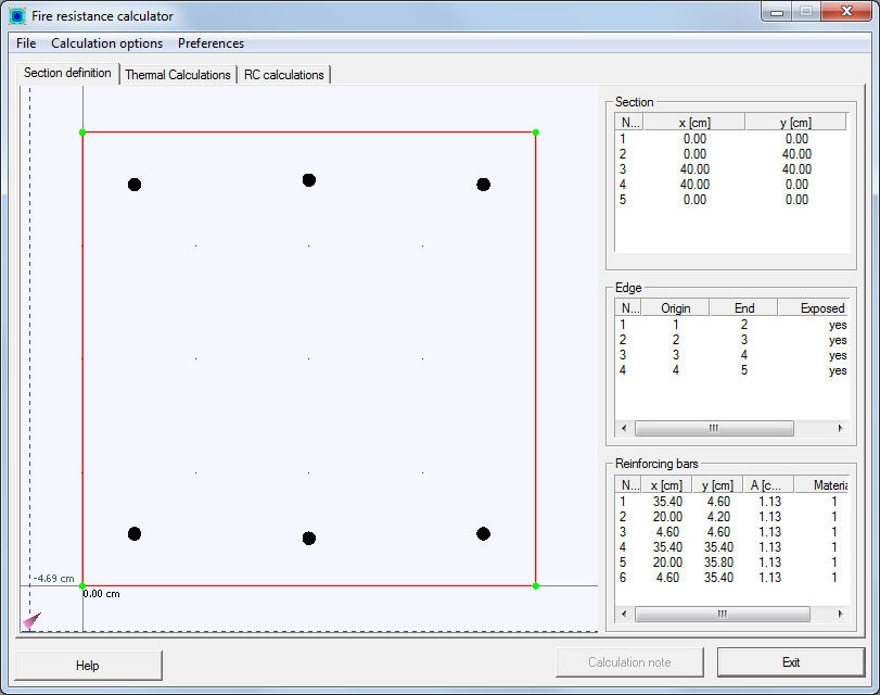Note: In the current version of the calculator, exposed to fire is the only type of the edge of the column cross section. All edges of a section are exposed to fire.